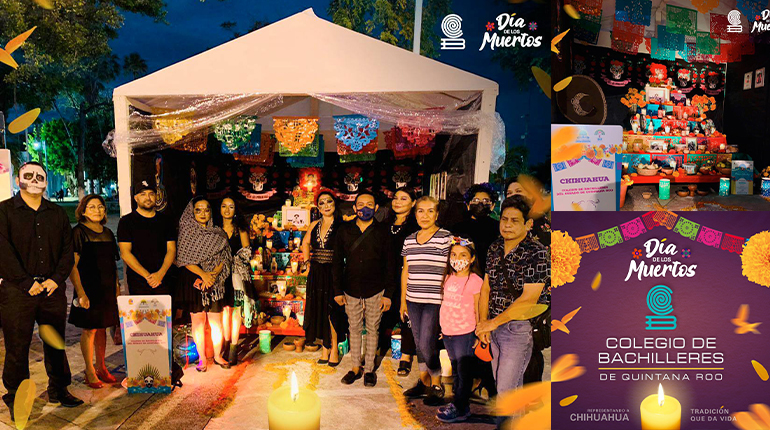 El Colegio de Bachilleres continúa su participación en la exhibición de ofrendas a los difuntos, representando al estado de Chihuahua. Día de muertos, tradición que da vida.