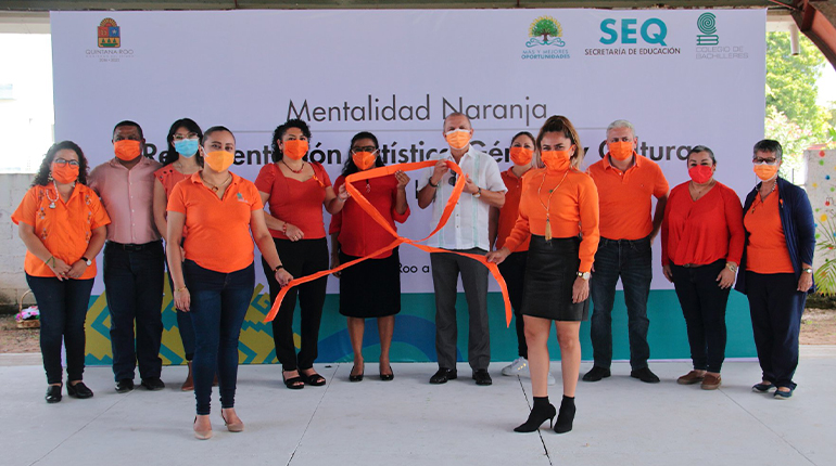 EL DÍA DE HOY, EL COLEGIO DE BACHILLERES PLANTEL CHETUMAL UNO SE PINTÓ DE NARANJA.