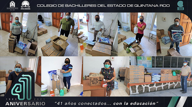 Colegio de Bachilleres Quintana Roo hace entrega de materiales de limpieza e higiene; beneficiando a los Planteles y EMSaD del Estado. Siguiendo las medidas de seguridad no bajamos la guardia para este regreso a la escuela..