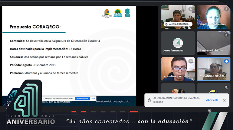 El Colegio de Bachilleres de Quintana Roo participó el día de hoy en el Conversatorio respecto al Marco Curricular Común, con el tema: Fundamento y referentes del rediseño del Marco Curricular Común de la Educación Media Superior; en la mesa de reflexión estuvieron los COBACH de los estados de Campeche, Tabasco, Yucatán y Quintana Roo, siendo el objetivo el de contribuir a la construcción de la Nueva Escuela Mexicana, desde una visión común. Por parte del COBACH Quintana Roo, se contó con la intervención de la Mtra. Yolanda Loría Marín, Directora Académica, el Mtro. Luís Miguel García del Alba, Docente del Plantel Chetumal Uno y el Mtro. Enrique Herrera Villa, Director del Plantel Río Hondo. .
